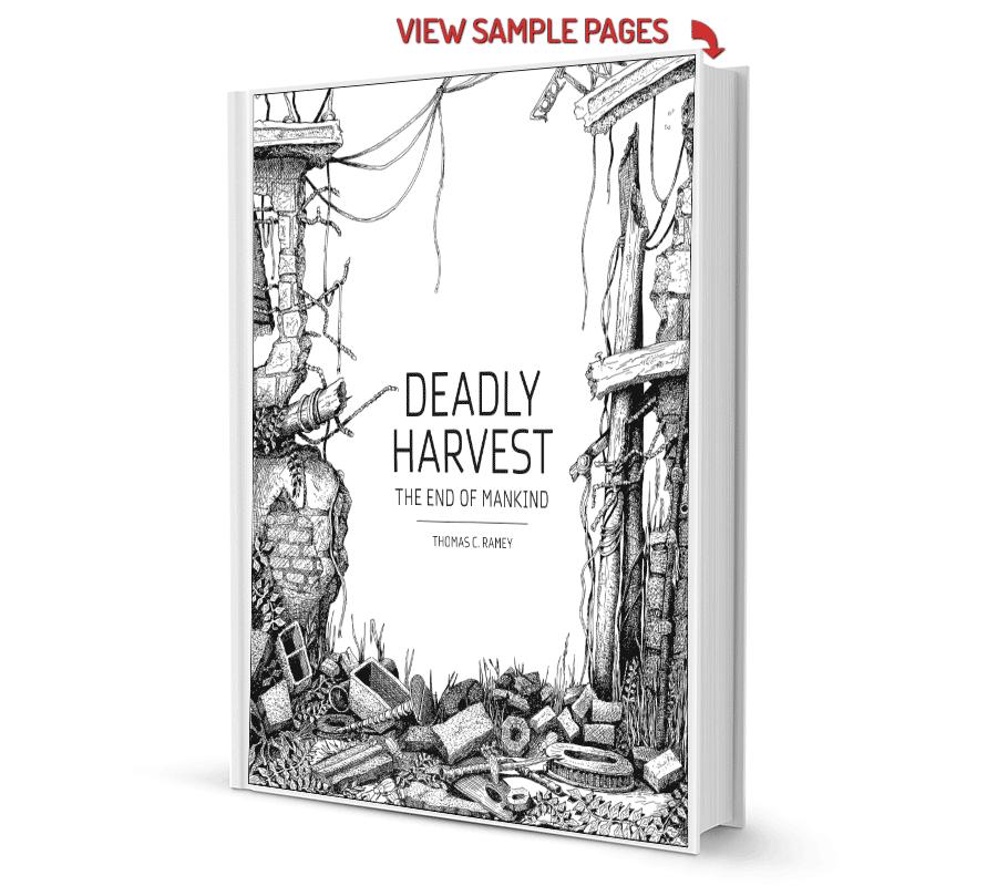 A dramatically changing climate, decimated biodiversity, weapons of mass destruction, rogue nations, more refugees on the run than ever in human history, and ubiquitous hate and vengeance, are all culminating in a DEADLY HARVEST
